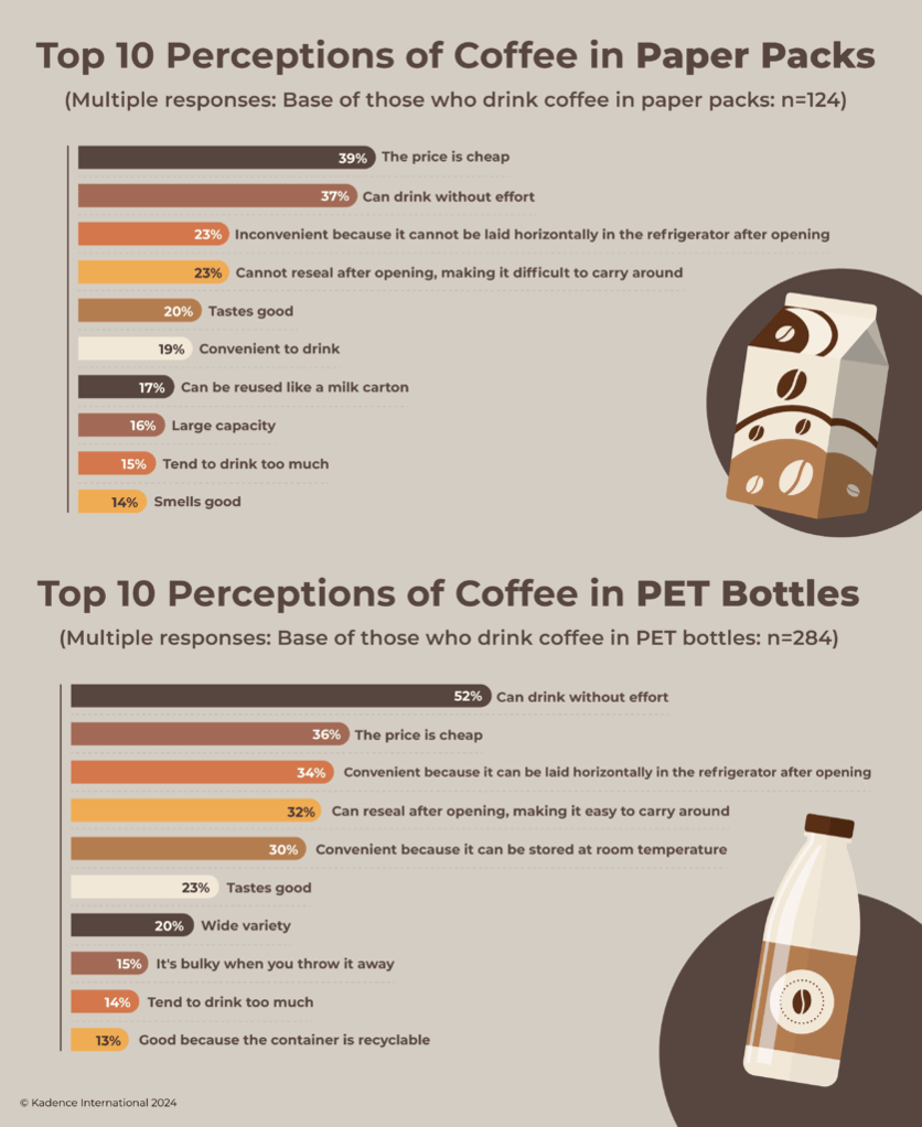 The survey also shed light on how packaging influences consumer preferences in Japan. Coffee in plastic bottles received high praise, with 52% of respondents appreciating the hassle-free experience. They also valued the affordability and convenience of storing bottles horizontally in the fridge.