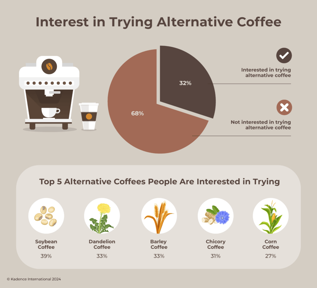 The survey introduced an intriguing aspect of Japan’s coffee scene: the openness to alternative coffee options. About 32% of respondents were willing to try alternatives such as soybean coffee, dandelion coffee, and brown rice coffee. This curiosity reflects a growing interest in diverse and possibly healthier coffee options, dovetailing with global dietary diversity and sustainability trends.